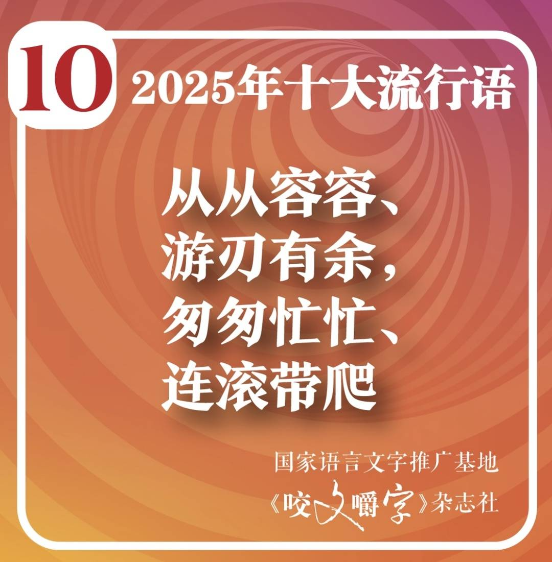 12月2日,有“語林啄木鳥”之稱的語文雜志《咬文嚼字》編輯部發布2025年度十大流行語。韌性、具身智能、蘇超、賽博對賬、數字游民、谷子(英文單詞goods的音譯,本義為商品,流行語中特指動漫、游戲等二次元文化的衍生產品)、“預制××”、活人感、“××基礎,××不基礎”、“從從容容、游刃有余,匆匆忙忙、連滾帶爬?”入選。